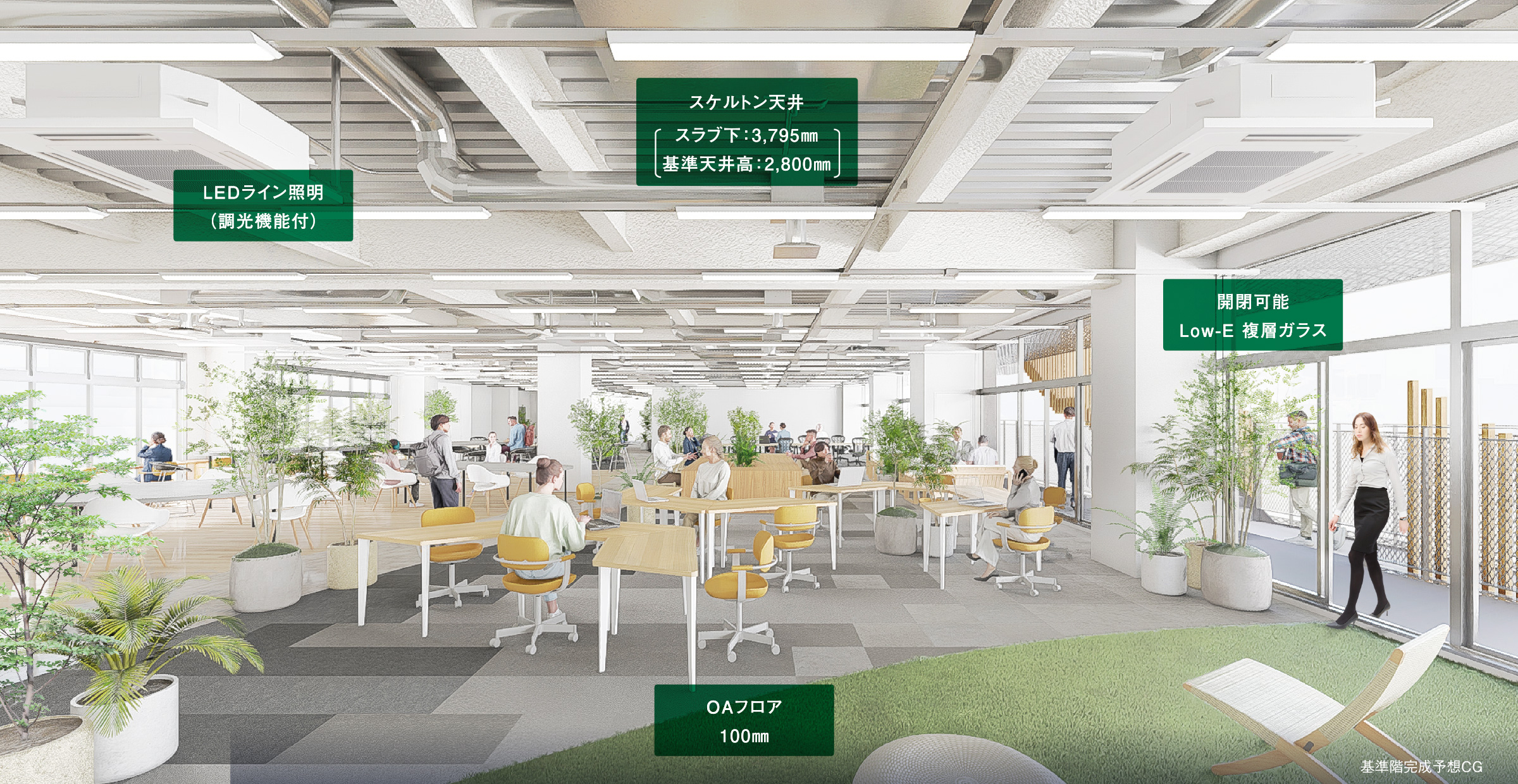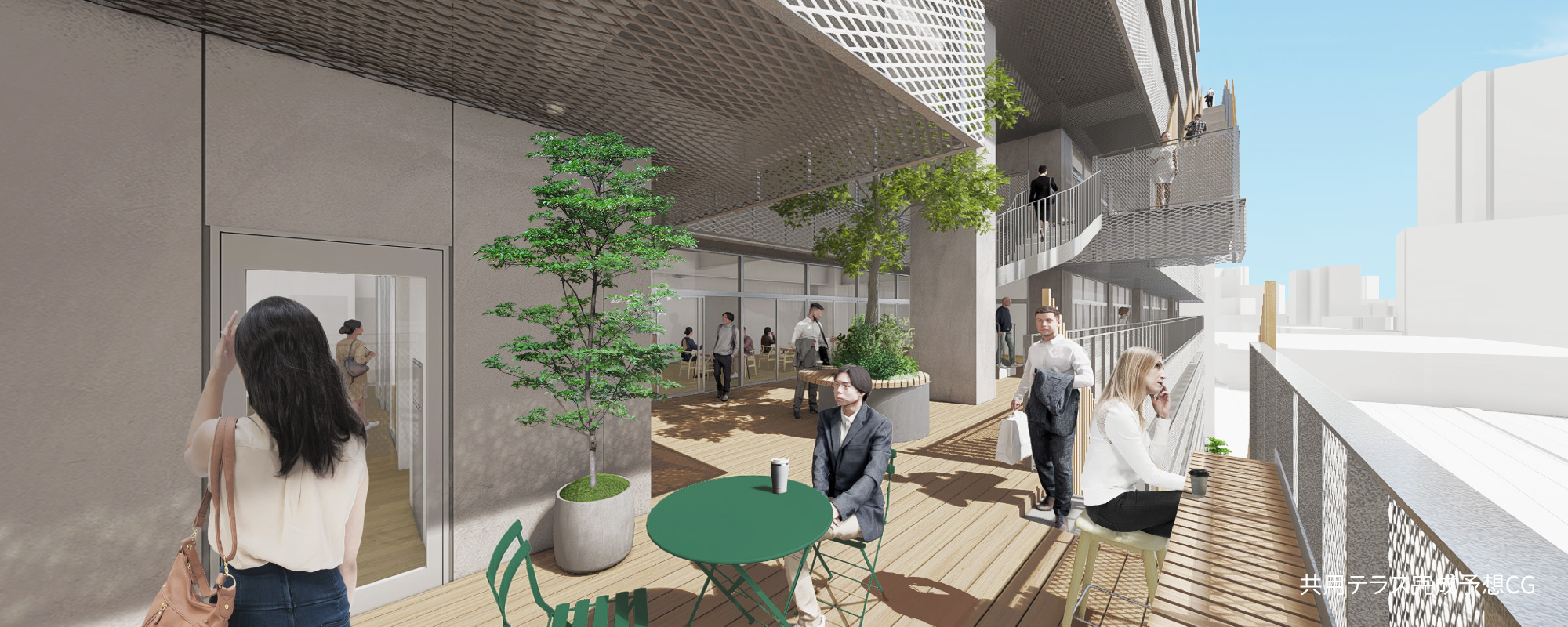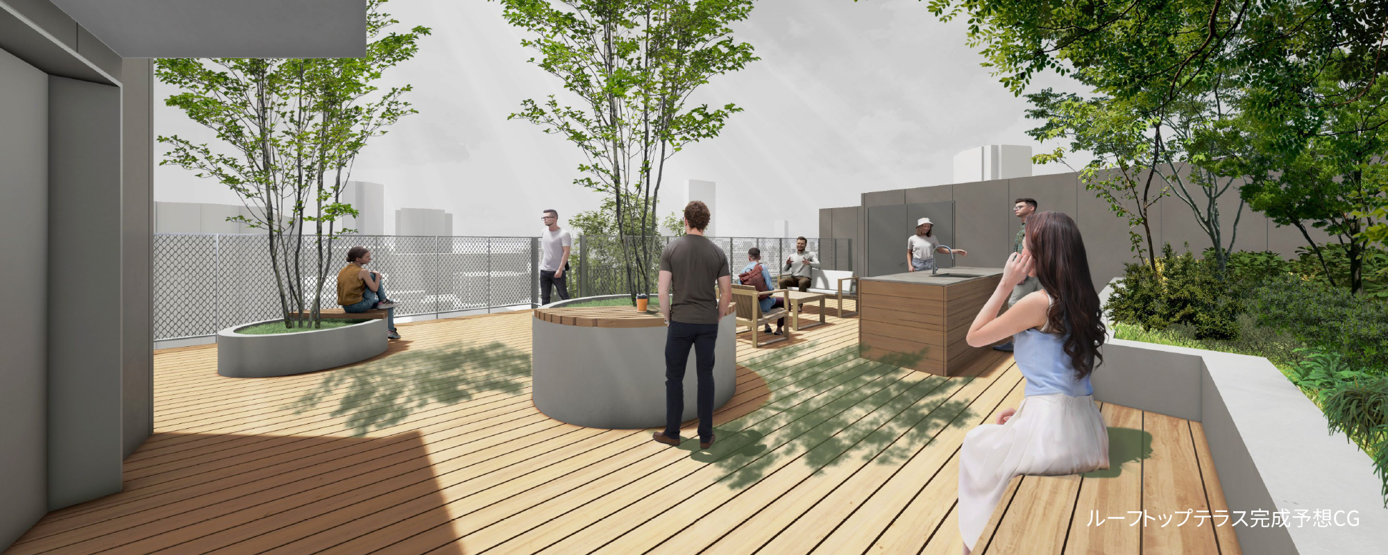 屋上階には、ワーカーがリフレッシュや交流を楽しめるルーフトップテラスを設置。変貌する街を見渡せる眺望も魅力です。