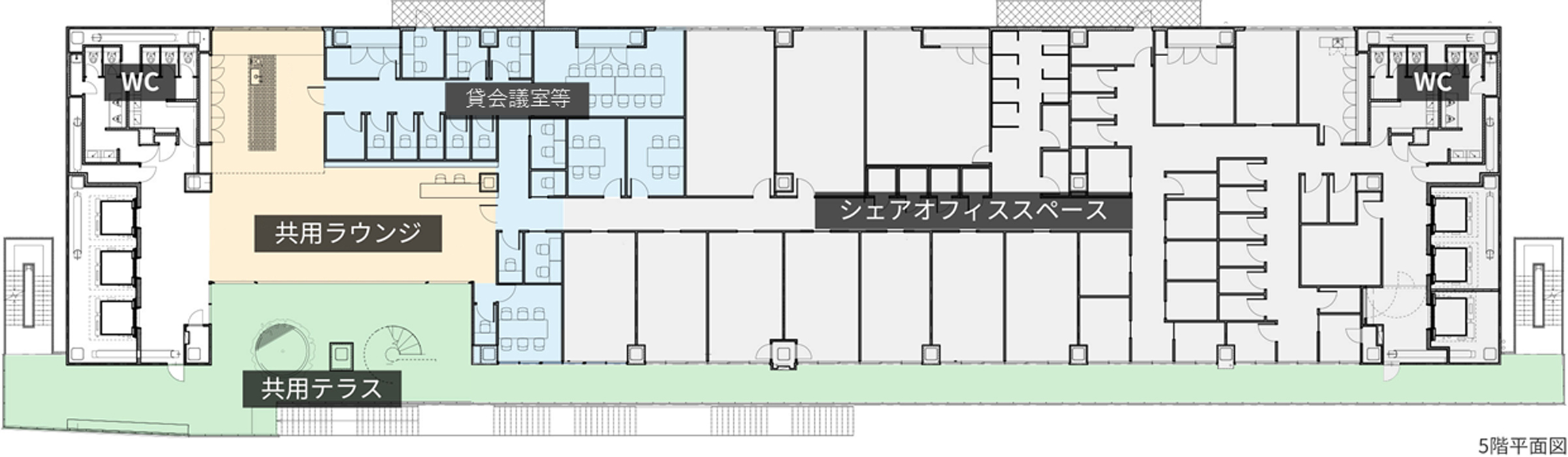 ※共用ラウンジ・テラスは無償、貸会議室は有償を想定。