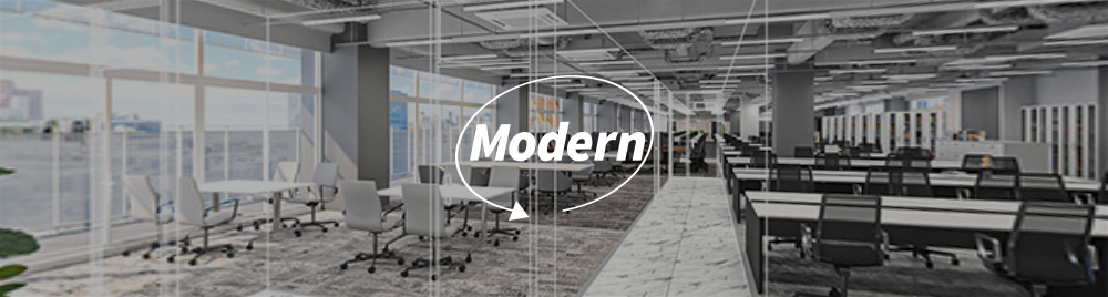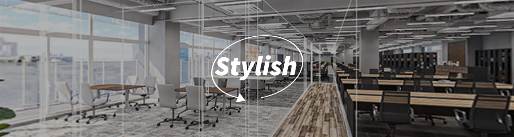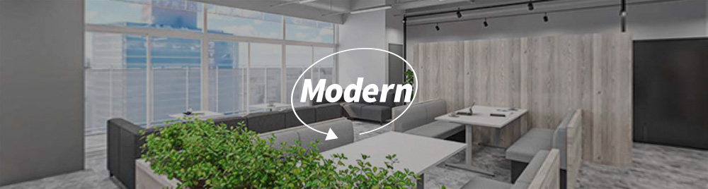 均等に統一されたワークステーションを中心に構成されたフリーアドレスプラン。メインストリートとサブストリートにより各エリアに直線的に移動が可能です。